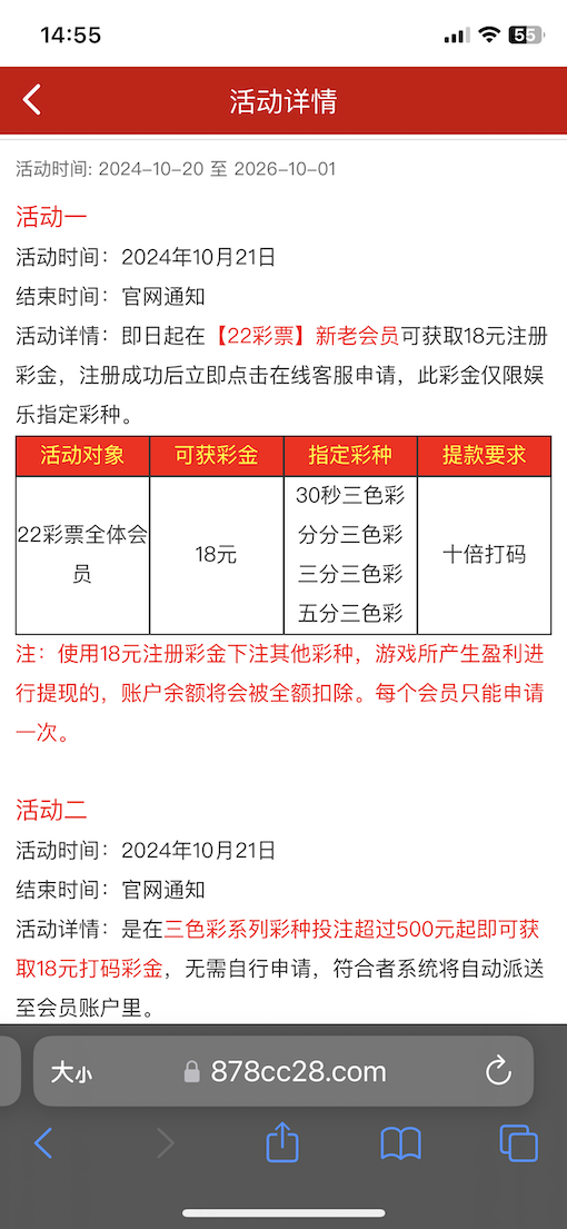到账情况:自测【充值后果自负】 领取方式:注册绑定信息找客服申请送18 安全系数:低 平台资历:未知 会员评分:★☆☆☆☆ 申领网址:https://878cc23.com/ 提现要求:最低提现额度为100元