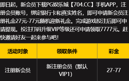 PG704注册绑卡送27