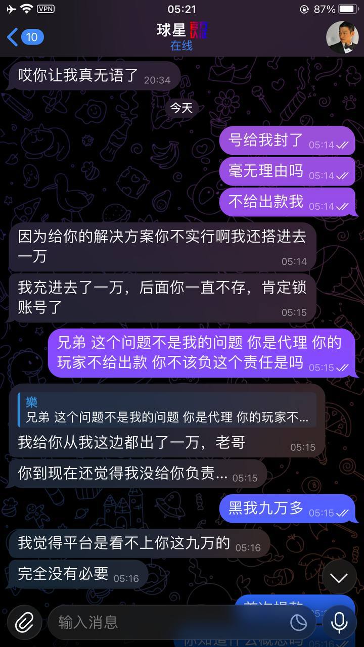 理由奇葩到爆:说检测到我用VPN,必须交50%保证金才能出款!老子投注全程没开VPN,几个月前注册时可能开过而已,这跟提款有半毛钱关系?懂行的兄弟都懂,这就是明摆着杀猪不给钱!