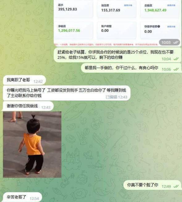 我线下线上实物推广砸了多少钱,下级几个大代理都是我拉来的,现在效果出来了你们就玩失踪?客服组长天天催我上量,佣金却一分不发,还让我拿反水混日子?连佣金都发不起,还开什么盘口,世界杯五大联赛还想赚?